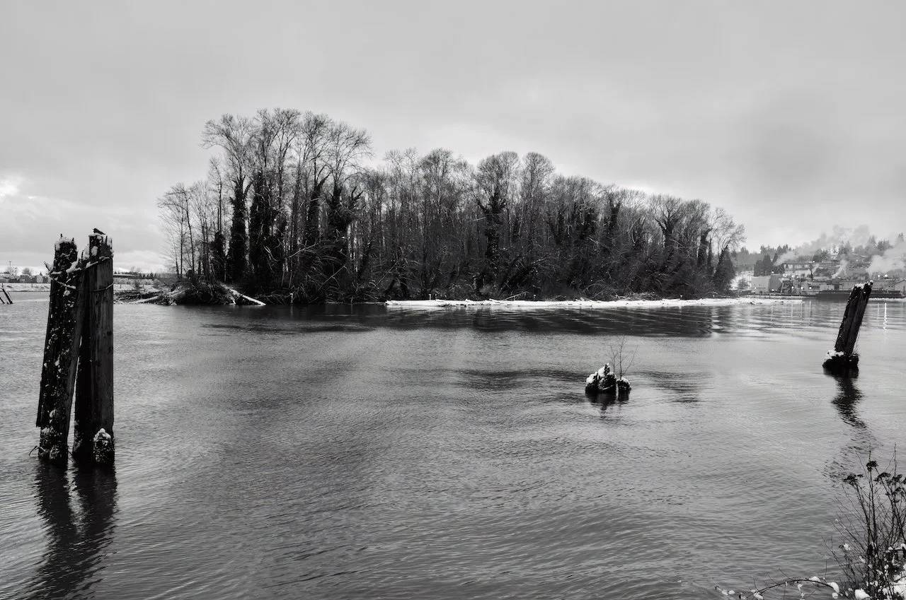 After the Snowstorm Landscape Feb 26 Written By Arthur Simpkins View fullsize Poplar Island in the Fraser River, New Westminster, B.C., February 26, 2023.Click image for lightbox. See morePoplar IslandFraser RiverLandscapeBlack and WhiteNew Westminster SnowstormsSnowPoplar IslandFraser RiverNew WestminsterMetro VancouverBritish ColumbiaPilingsRiverWaterReflectionsTreesIslandsB.C. Storm Arthur Simpkins Photographer http://www.arthursimpkins.com