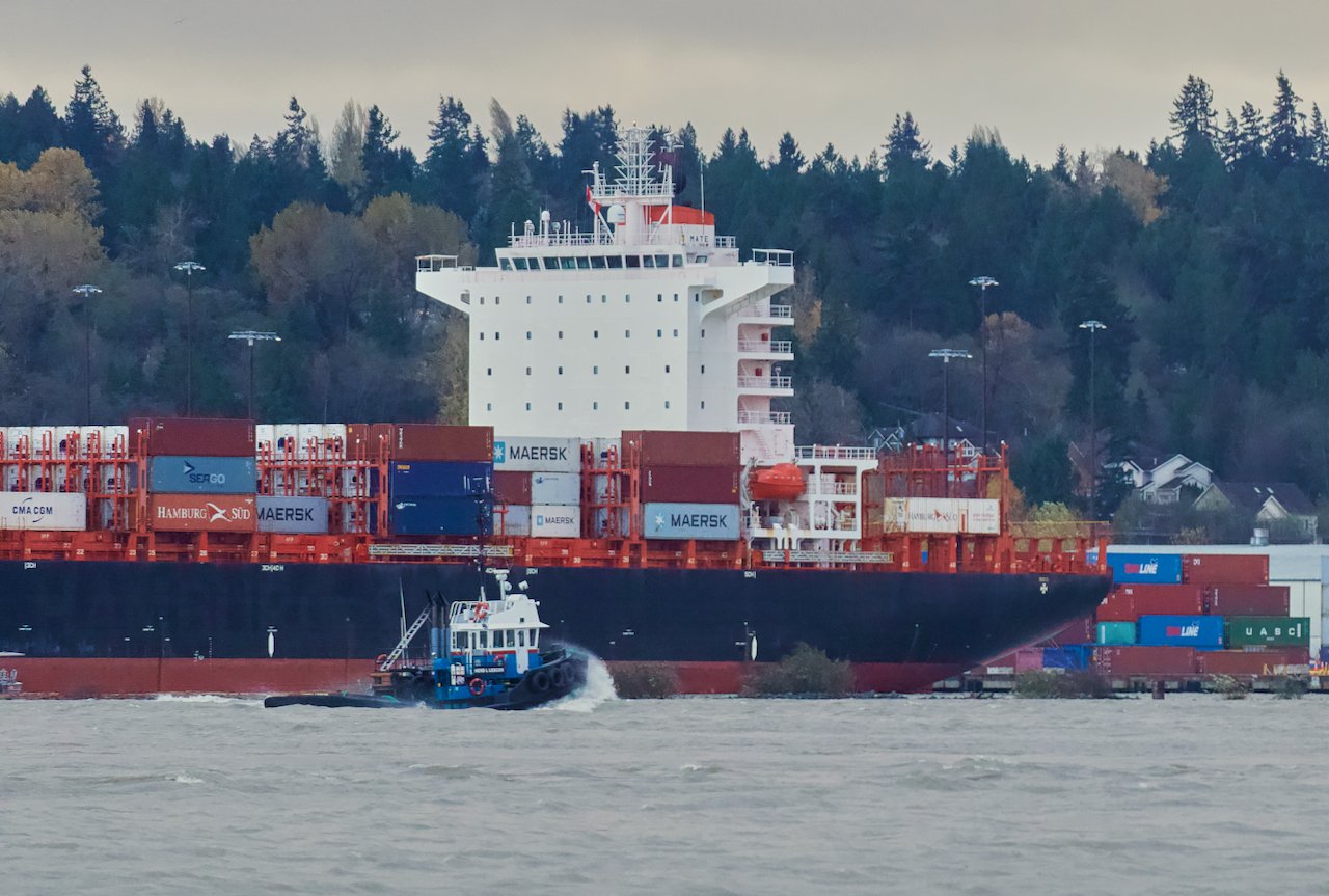 Ledcor Marine tugboat “HERB L. LEDCOR” passes by Fraser Surrey Docks on a windy November 15, 2021.