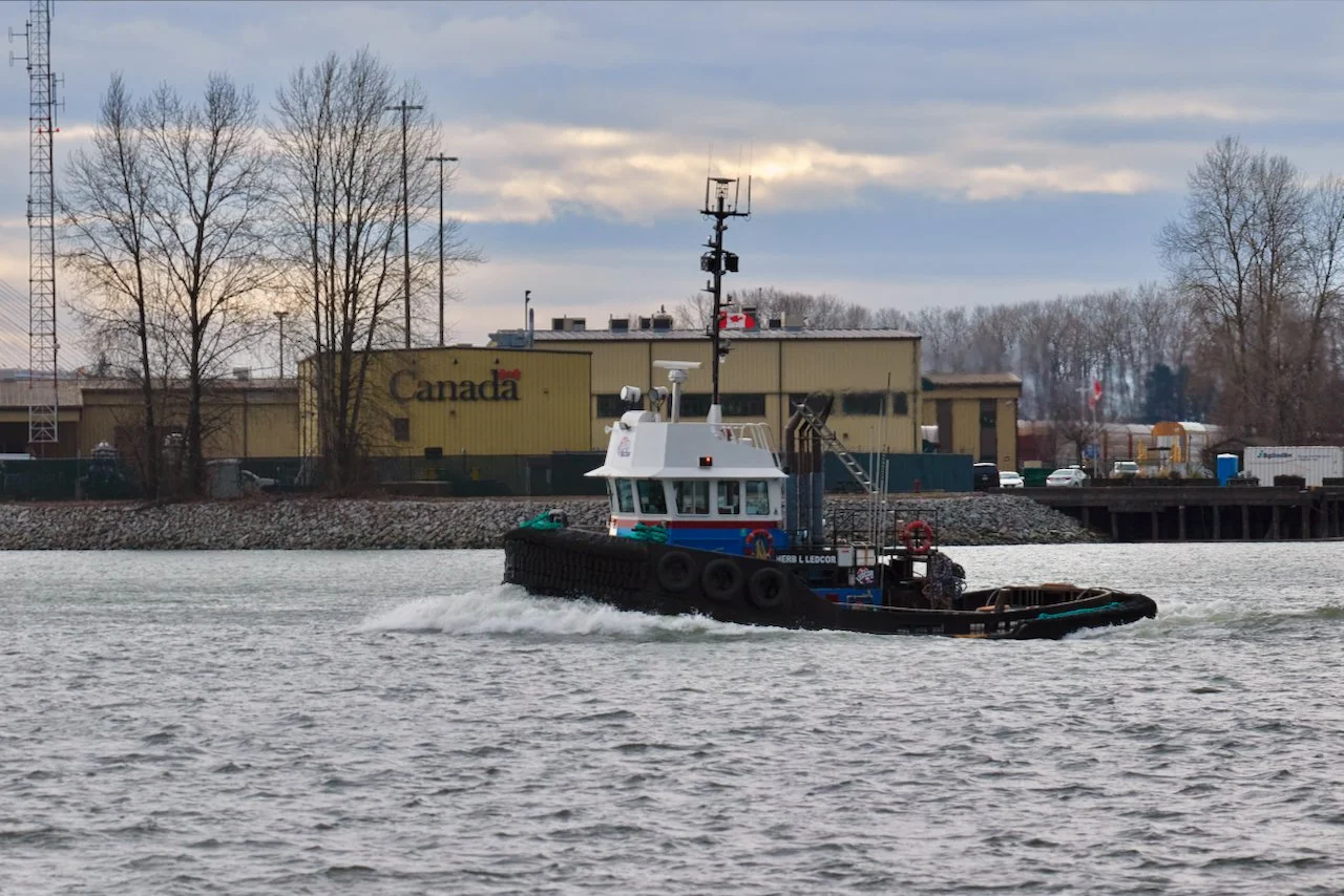Ledcor Marine tugboat "HERB L LEDCOR" off Shoal Point, Annacis Island in the Fraser River, Delta B.C., February 3, 2023.