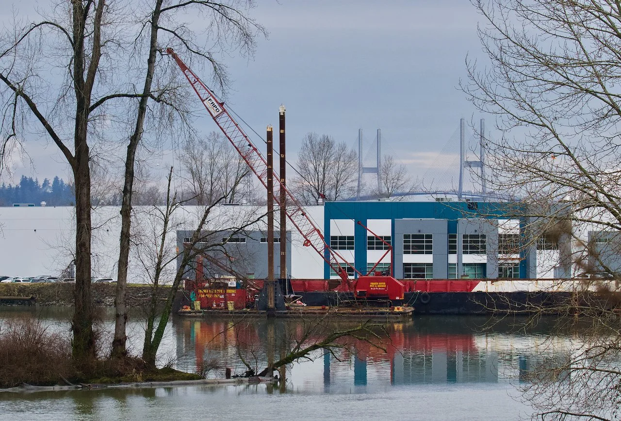 Poplar and Lulu islands in the Fraser River, New Westminster, B.C., January 17, 2022. The Alex Fraser Bridge is in the background.