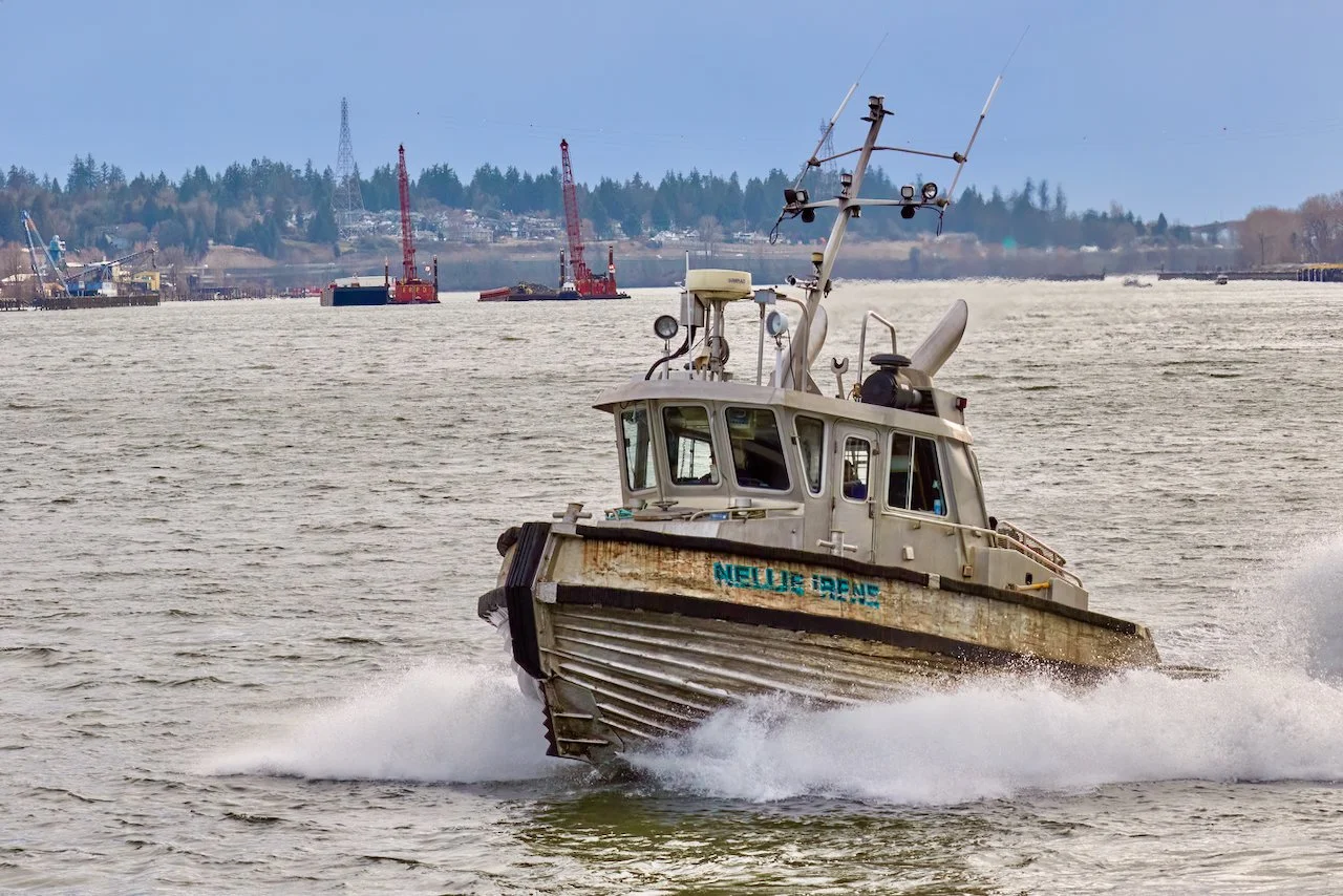 Forrest Marine Ltd. tugboat "NELLIE IRENE" in Fraser River, New Westminster, B.C., February 13, 2023.