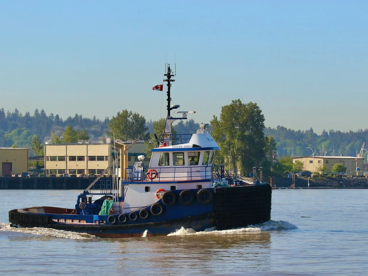 Mercury Launch & Tug Ltd. tugboat "OCEAN GREG" in Fraser River, Annacis Island, Delta, B.C., May 14, 2023.
