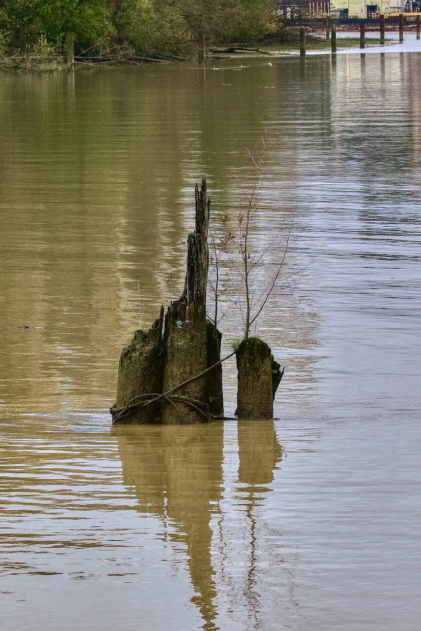 Pilings in the Fraser River, New Westminster, B.C., November 19, 2021.
